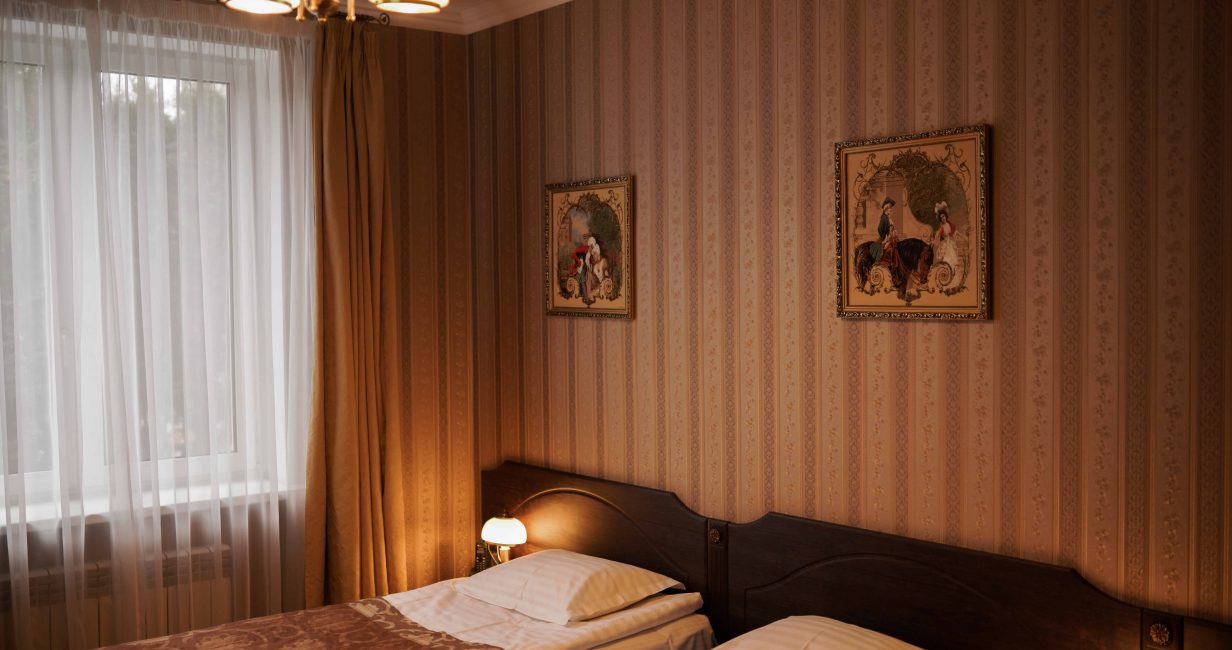 A spacious 22 m² twin room equipped with modern furniture and amenities. It features two separate single beds, along with a work and relaxation area, making it an ideal choice for friends, colleagues, or business partners.