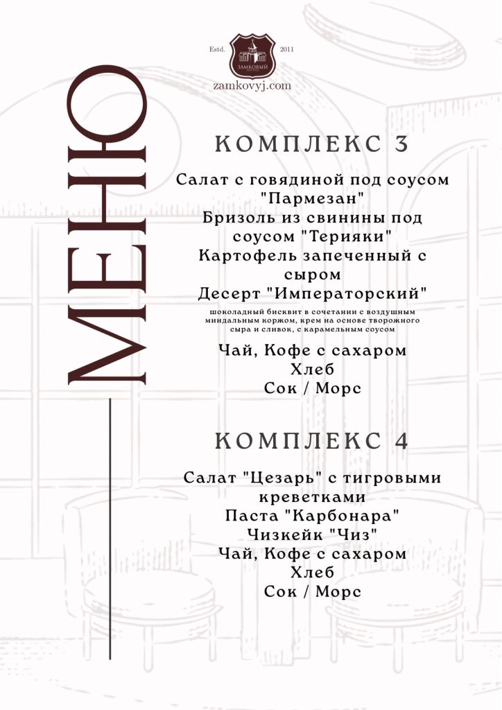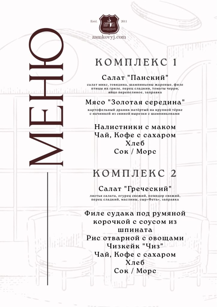 * Обед или ужин (комплекс на выбор) – удобство и экономия времени.