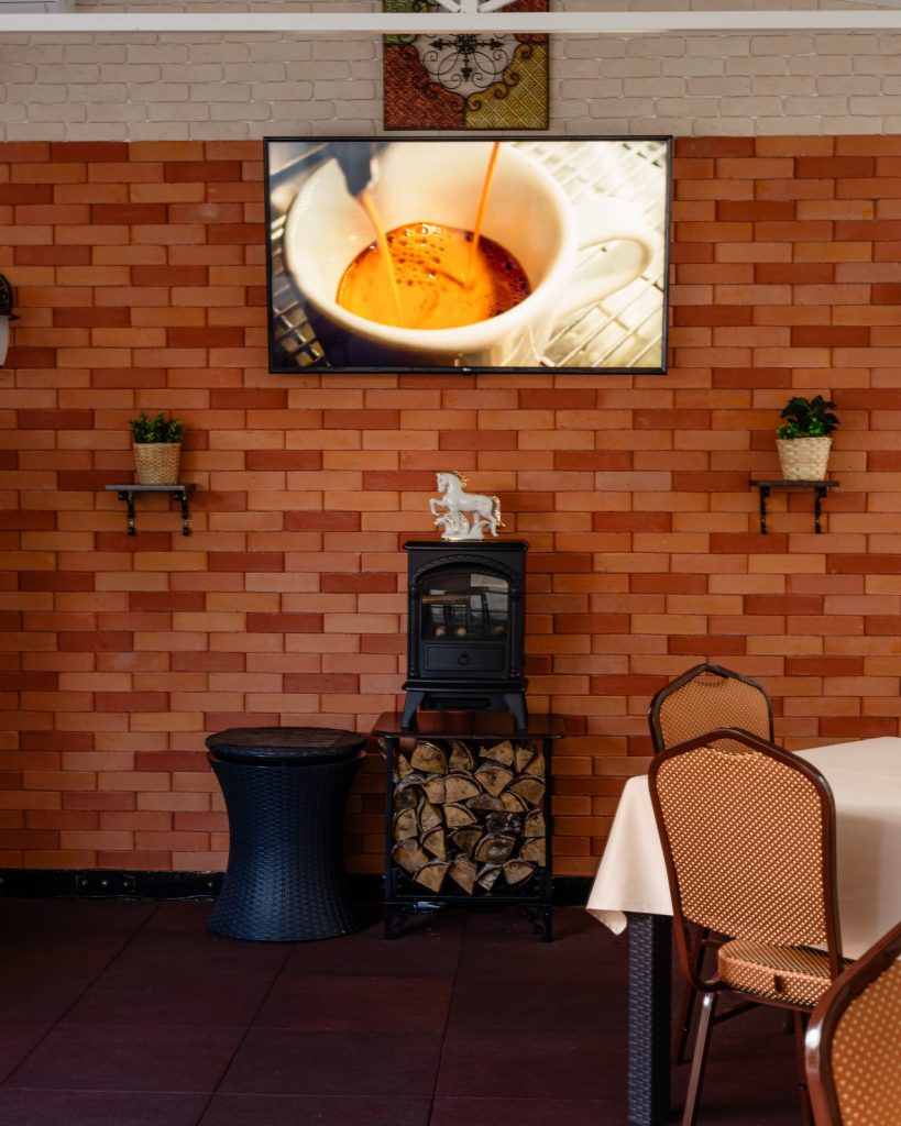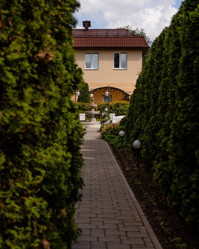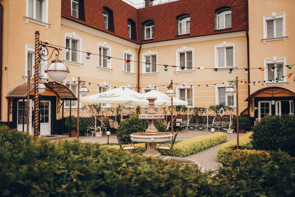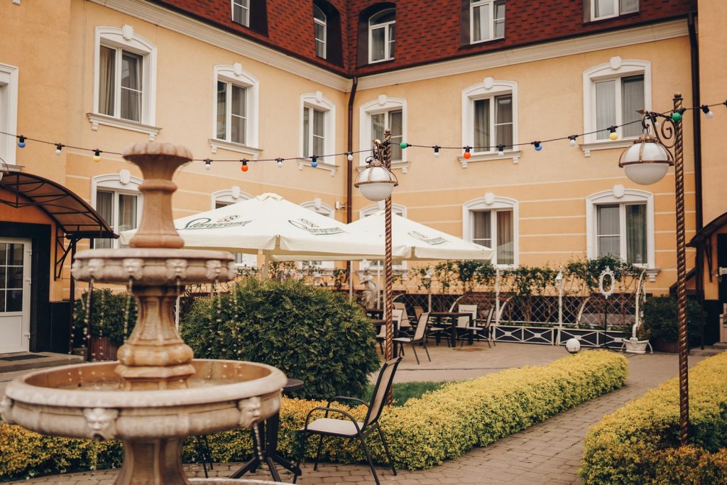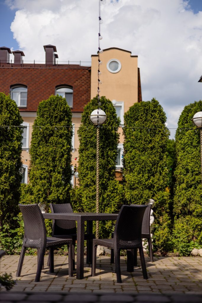 Погрузитесь в атмосферу европейского комфорта в нашем живописном дворике, где вас ждет прекрасная атмосфера, уютная зона для отдыха.