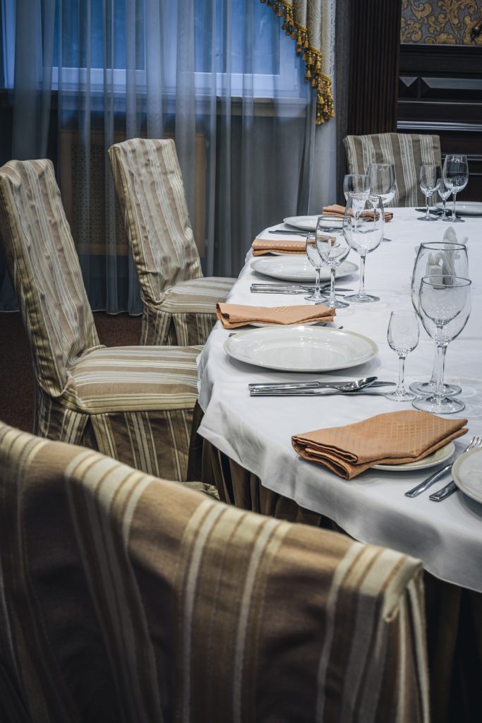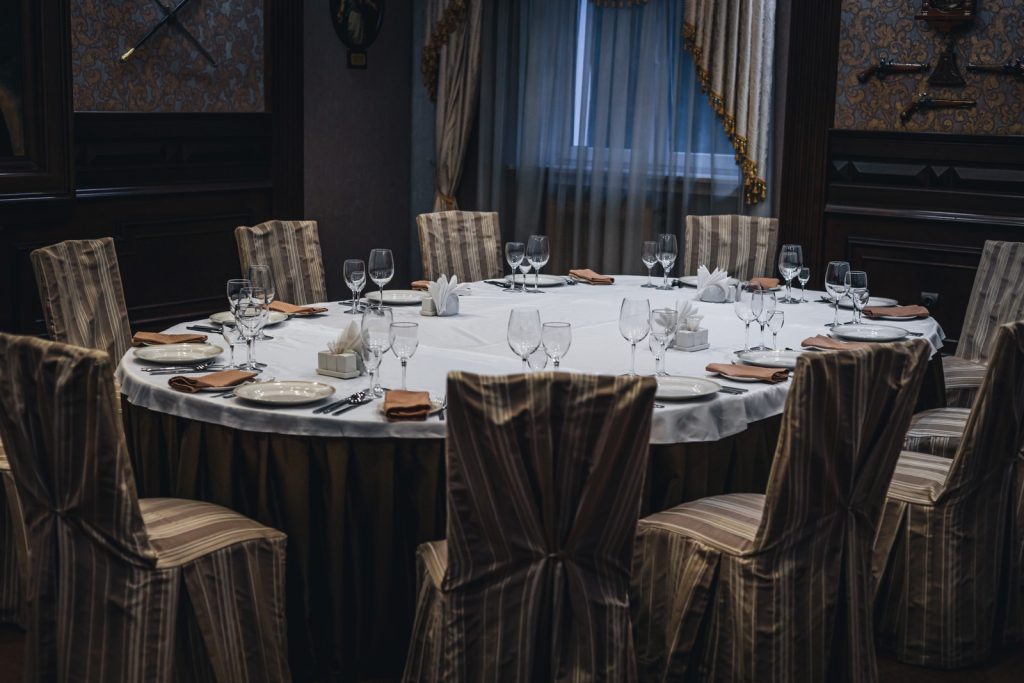 При меньшем количестве человек возможна рассадка в других конфигурациях со столами и стульями (в зависимости от количества участников).
