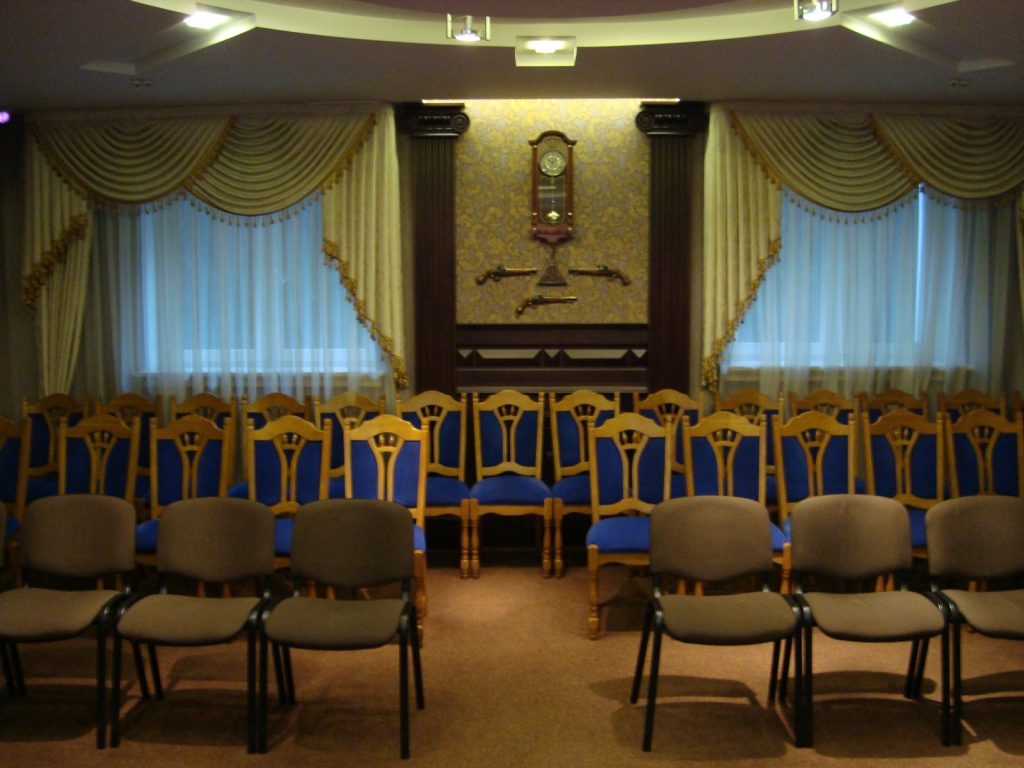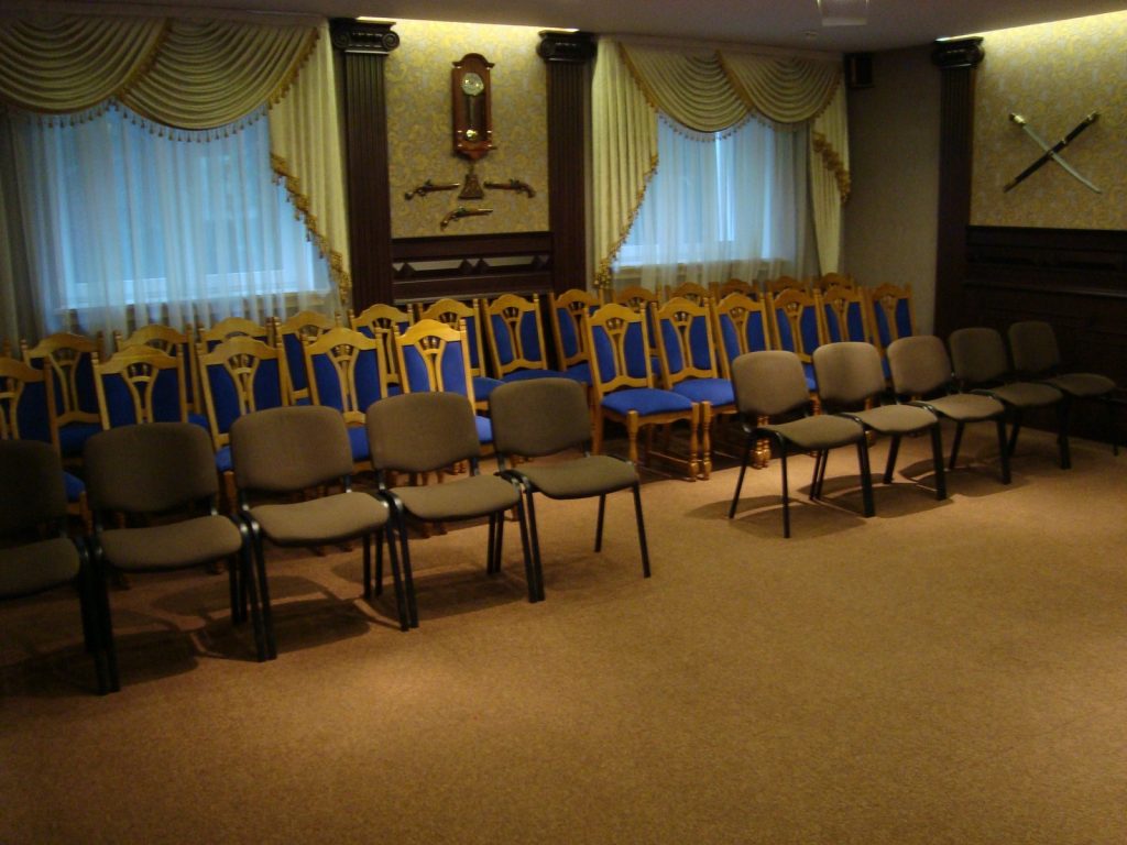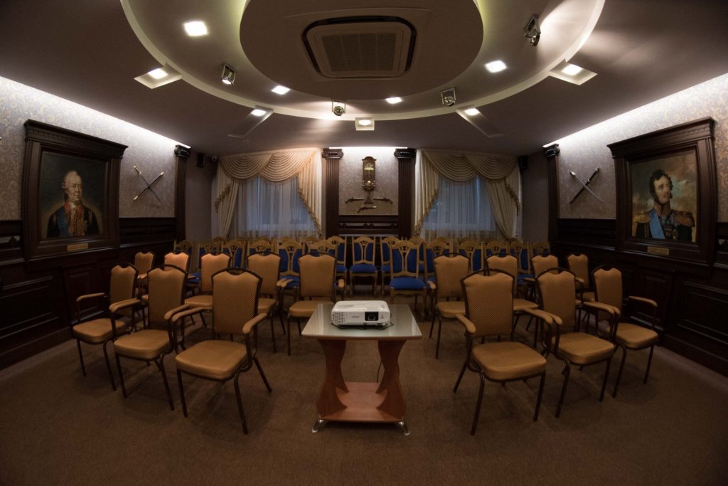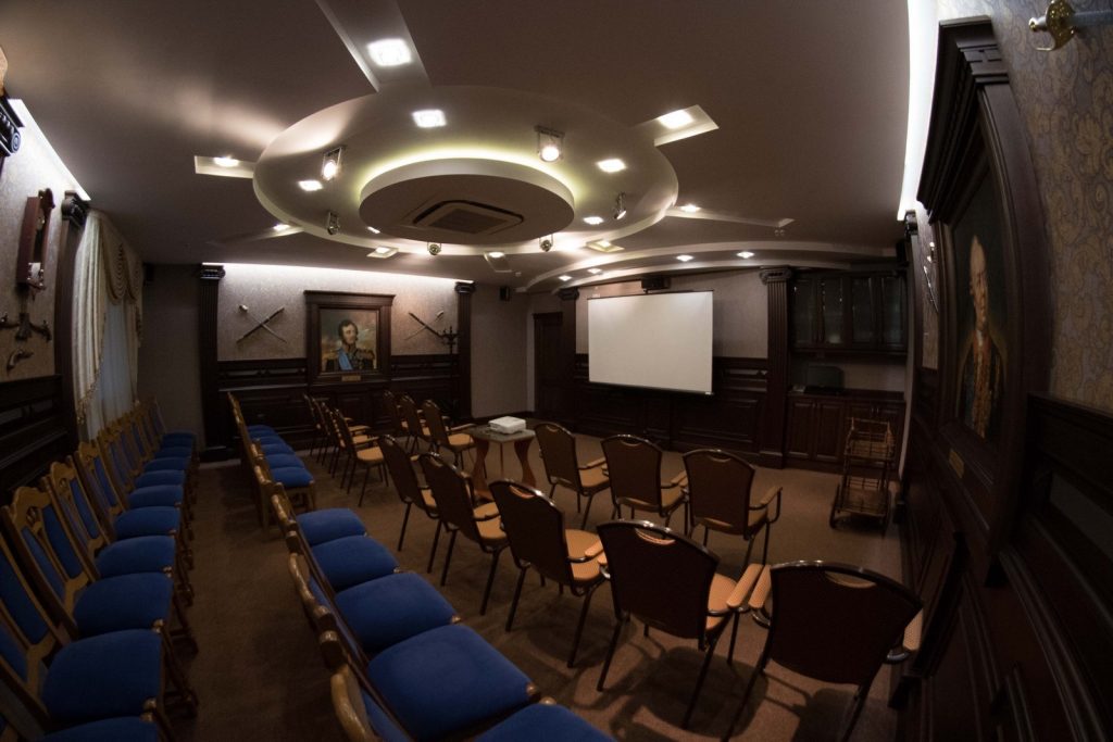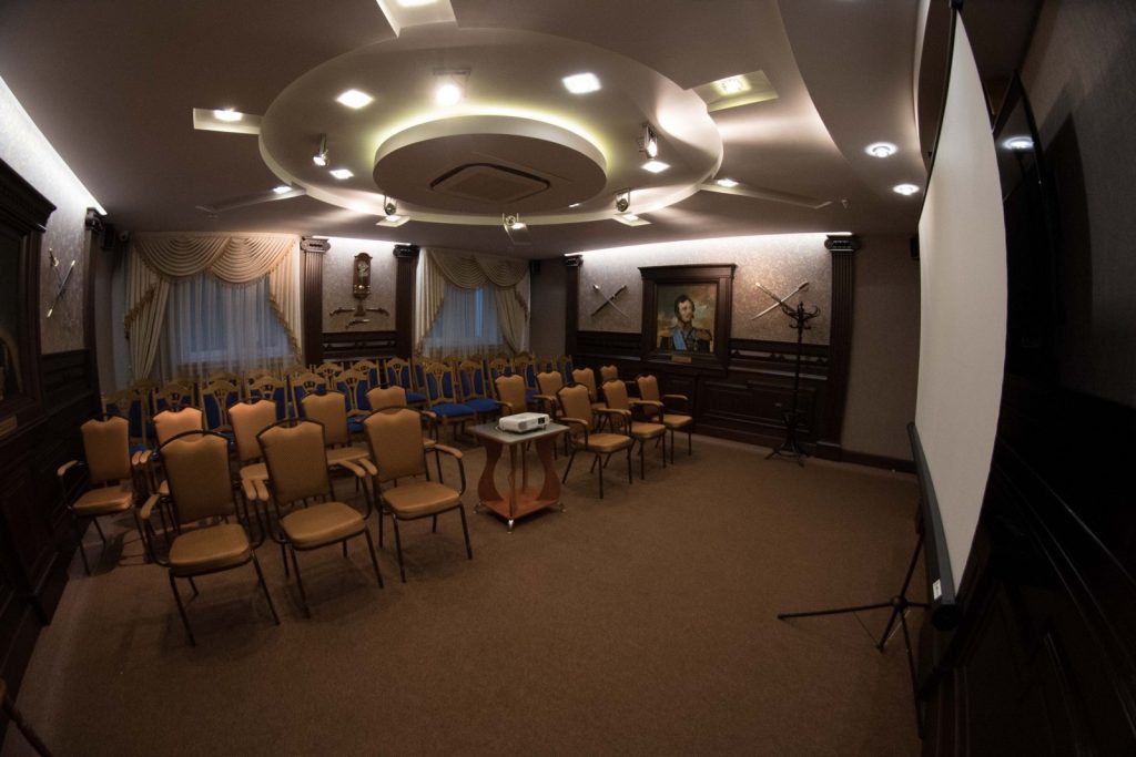 Максимальная вместимость зала — 50 человек при театральной рассадке.