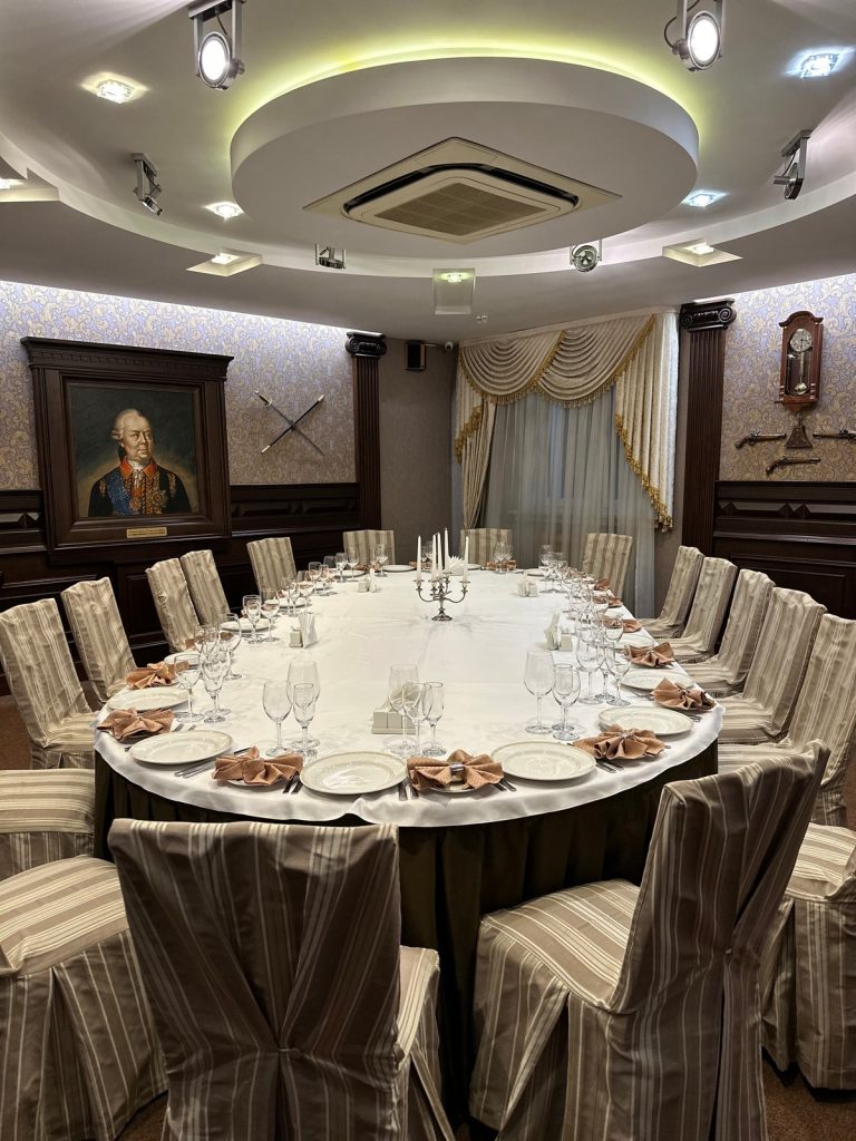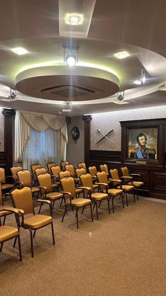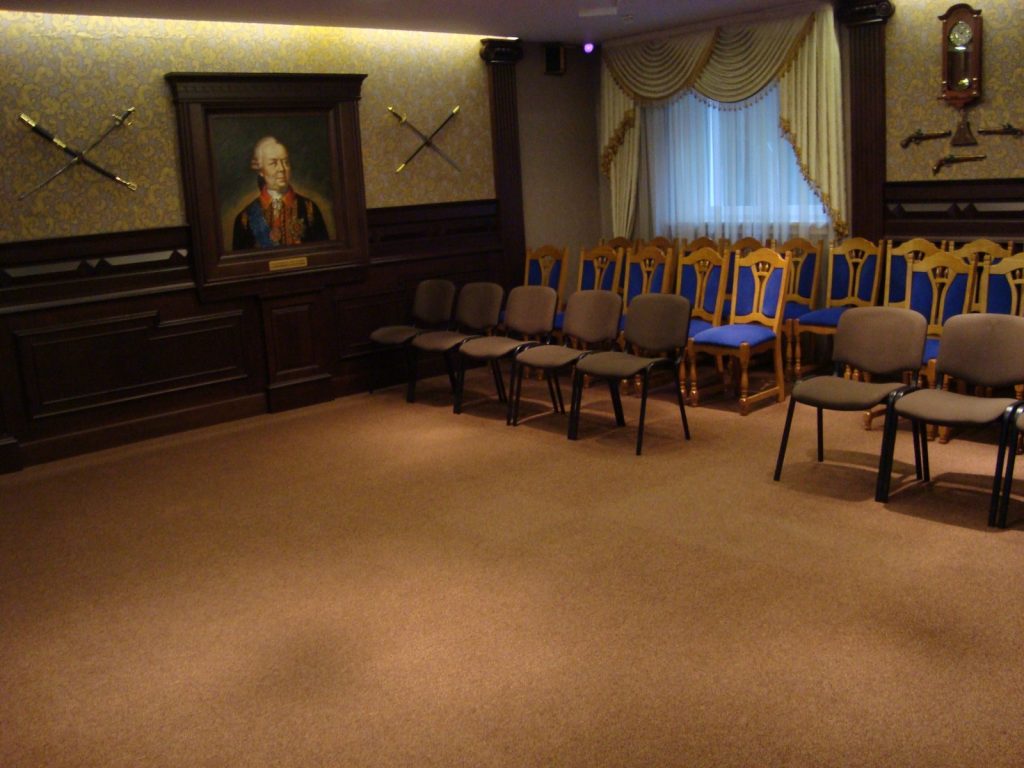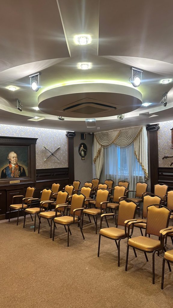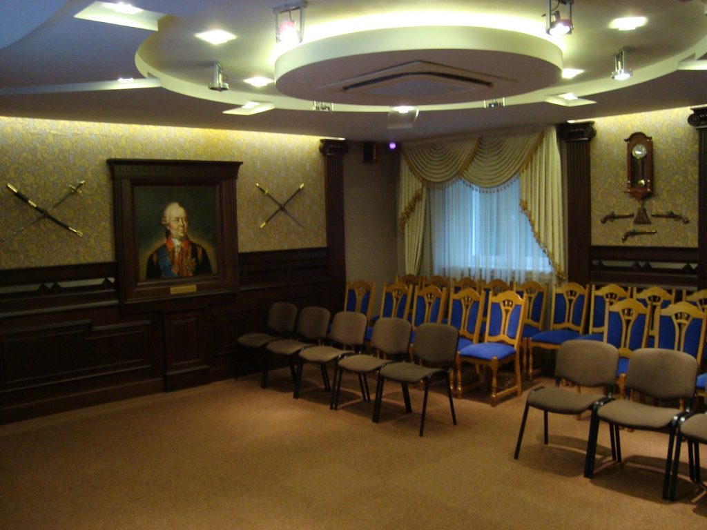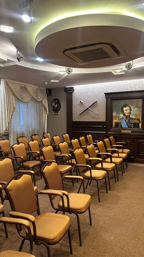 Максимальная вместимость зала — 50 человек при театральной рассадке.