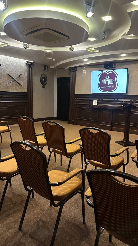 Парк-отель «Замковый» в Гомеле — это не только место для отдыха, но и прекрасная площадка для проведения деловых мероприятий. Наш конференц-зал, рассчитанный на группы до 50 человек, оборудован современной аудио-, видео- и компьютерной техникой, что делает его идеальным для семинаров, тренингов, совещаний и презентаций. Мы создали все условия, чтобы ваше мероприятие прошло на высшем уровне, а его участники чувствовали себя комфортно.